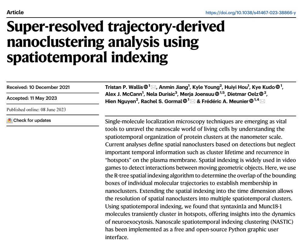 Published research in Nature Communications: “Super-resolved trajectory-derived nanoclustering analysis using spatiotemporal indexing.”